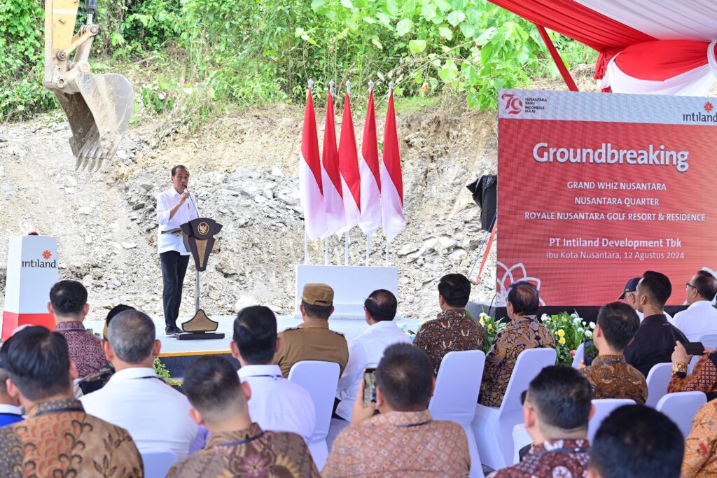 NUSANTARA, JurnalNusantara.co – Presiden Joko Widodo melakukan peletakan batu pertama (groundbreaking) untuk proyek PT Intiland Development Tbk di kawasan Ibu Kota Nusantara (IKN), Kabupaten Penajam Paser Utara, Provinsi Kalimantan Timur, pada Senin, 12 Agustus 2024. Proyek besar yang terdiri atas Grand Whiz Nusantara, Nusantara Quarter, dan Royale Nusantara Golf Resort & Residence ini menjadi tonggak penting dalam pengembangan IKN sebagai pusat pemerintahan baru Indonesia.